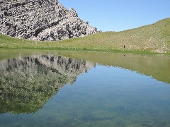 The reflections in the Drakólimni. See the hike Astráka refuge - Drakólimni and back.