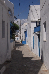 havendam komen. De "hoofdstraat" in Chóra. (2u51) Zo komen we bij de kerk van Agios Geórgios. Nog geen 2 minuten verder gaan we links (restaurant I Ateriasti), en zo kronkelen we tot bij het bekendste restaurant, Néo Remetzo. Hier kunnen we afdalen tot bij de havendam. (2u56) [Hopelijk is er een bar of restaurant open - in de zomer is dat natuurlijk geen probleem, maar anders is Chóra heel rustig en verlaten... De Skopelítis komt rond half zes.] Voor de